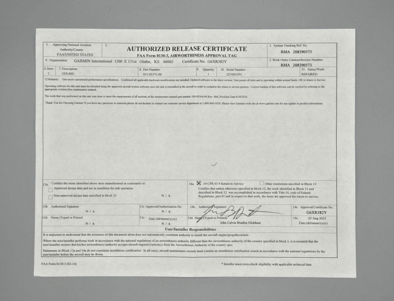 This repaired GDL 88D comes with an 8130-3